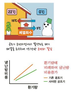 공기조화기 운전과정에서 발생되는 배기열에서 폐열을 회수하여 Re-Cycle하는 고효율 공조시스템