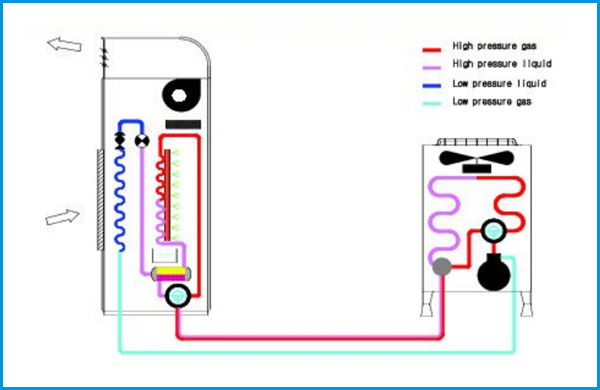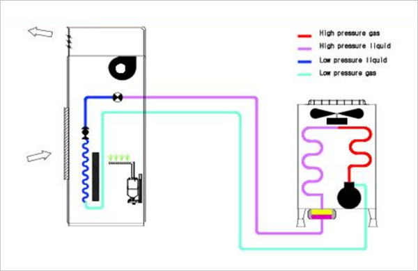 항온항습을 유지하기 위해 냉동기를 가동하게 되면, 압축기에서 아까운 열에너지가 버려지게 되는데, 이 열에너지를 활용하여 온도 및 습도를 조절하는 장비가 에너지절약형 항온항습기 입니다.